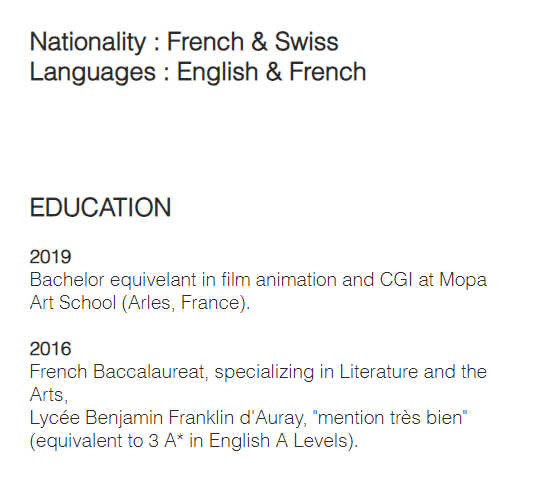 I studied 3 years at Mopa, CG Animation School (France), finishing the first cycle.